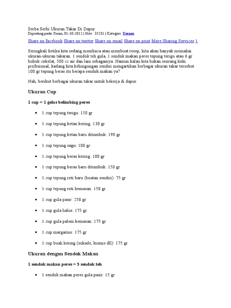 Dapur saya - KONVERSI DAN TAKARAN BAHAN MAKANAN Ketika… | Facebook