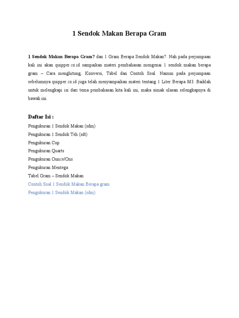 1 Sendok Makan Berapa Gram: Daftar Isi