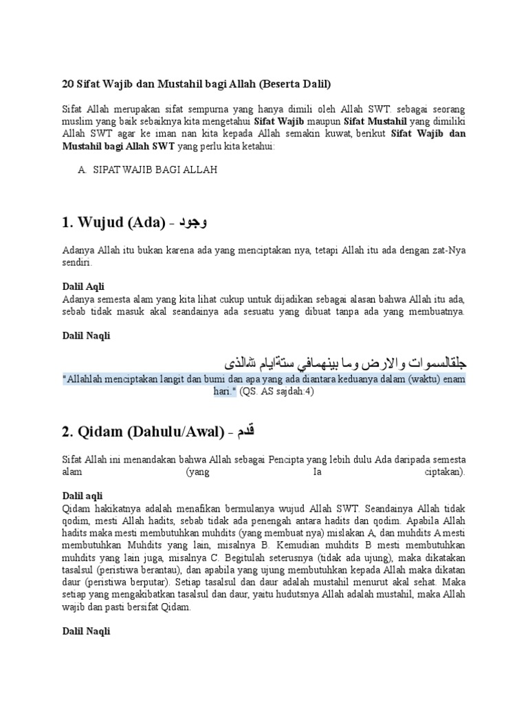 DOC) SIFAT WAJIB ALLAH DAN 20 SIFAT MUSTAHIL ALLAH | Reza …