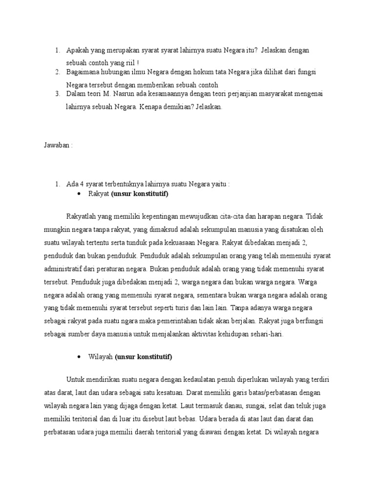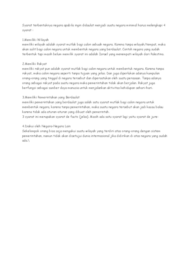 Apakah Yang Merupakan Syarat Syarat Lahirnya Suatu Negara Itu (1)