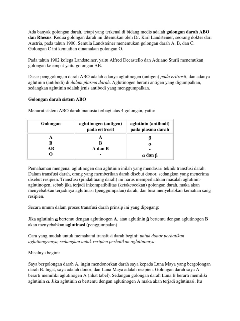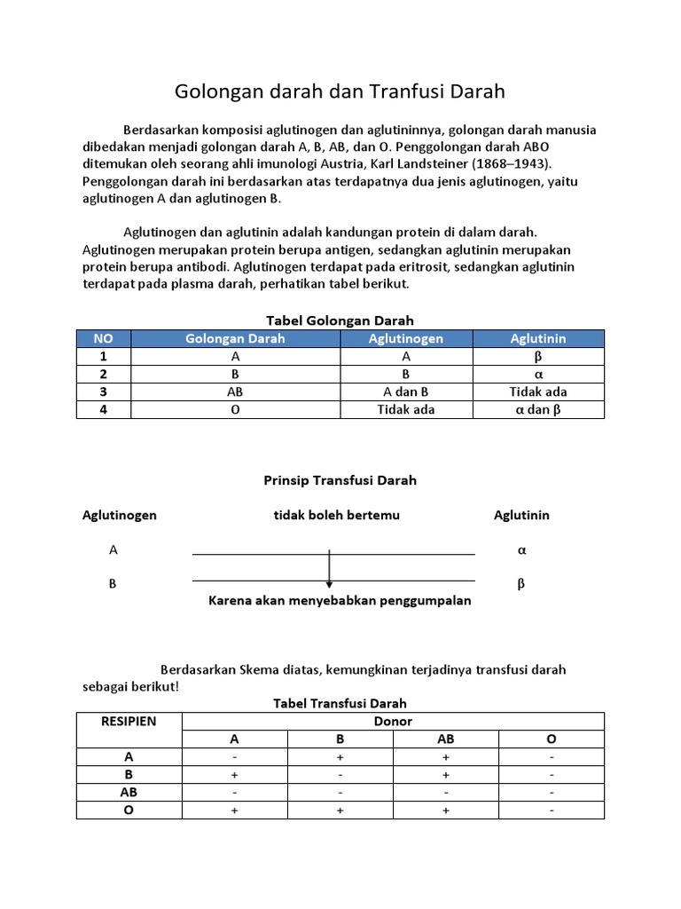 1. orang yang bergolongan darah A tidak mungkin mendonorkan darahnya kepada orang yang bergolongan - Brainly.co.id