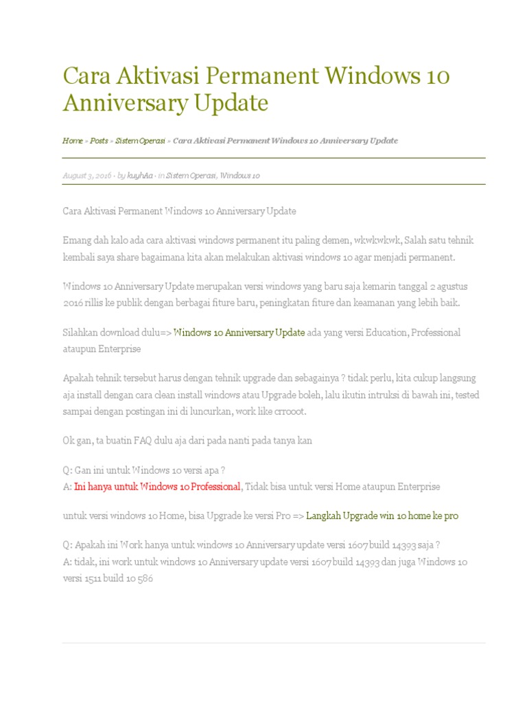 Cara Aktivasi Permanent Windows 10 Anniversary Update | kuyhAa