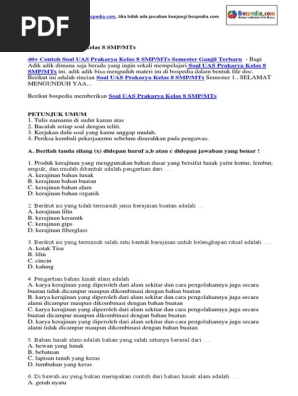 40+ Contoh Soal UAS Prakarya Kelas 8 SMP MTs Semester Ganjil Terbaruu