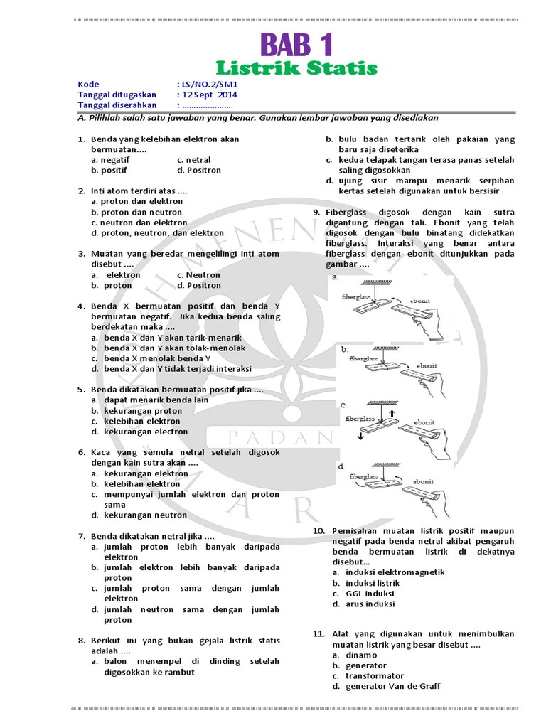 ulangan harian listrik statis smp kelas ix