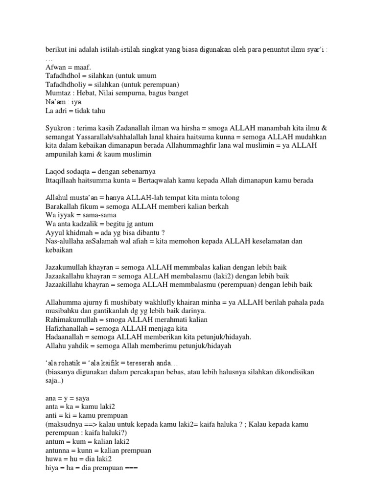 BELAJAR ISTILAH BAHASA ARAB YANG SERING DI TULIS OLEH PARA PENGGUNA DUMAY - Isi Majmuah