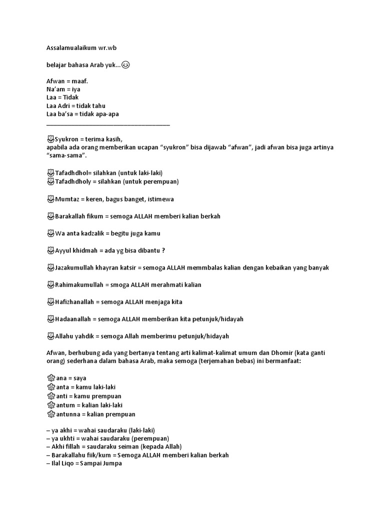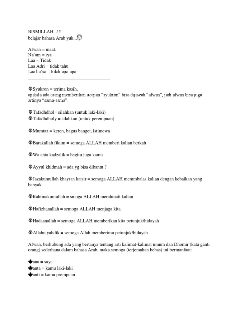 DOC) BAHASA ARAB UNTUK SEHARI HARI | Reben Jo - Academia.edu