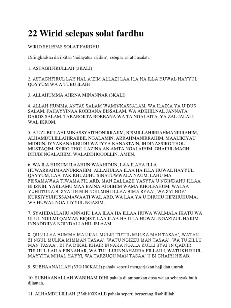 22 Wirid Selepas Solat Dalam Rumi
