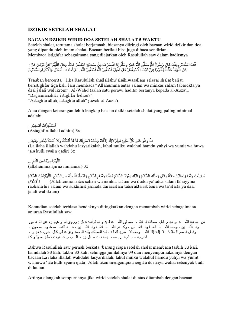 DZIKIR SETELAH SHALAT
