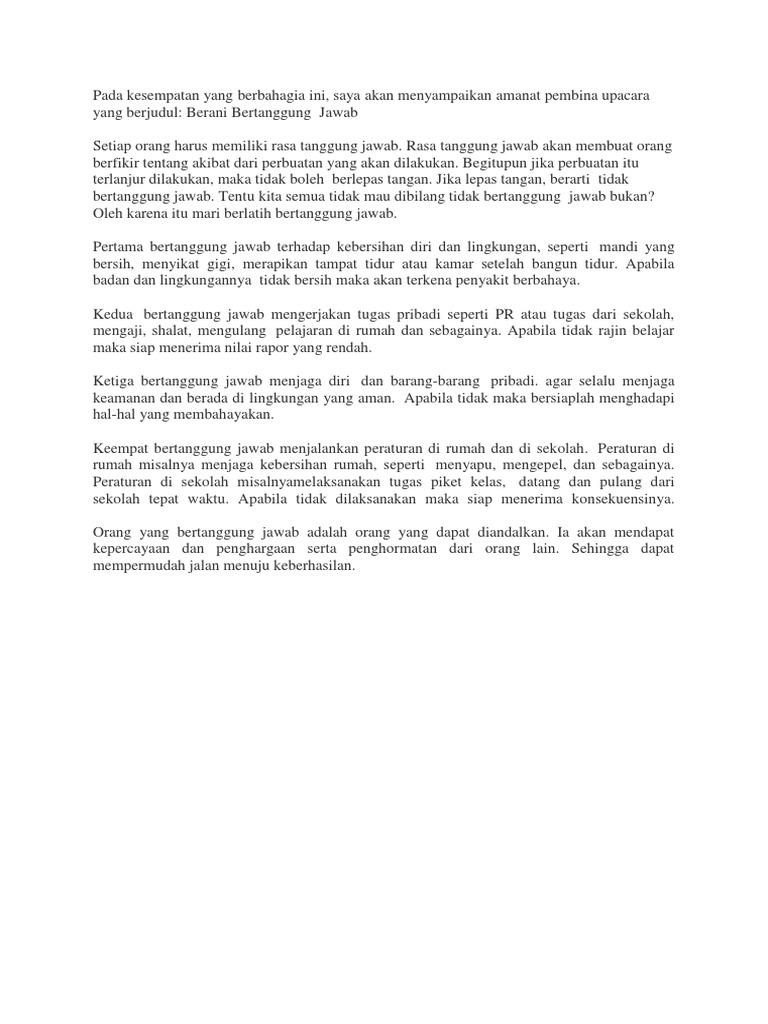Teks Amanat Pembina Upacara Tentang Tanggung Jawab - Jago …