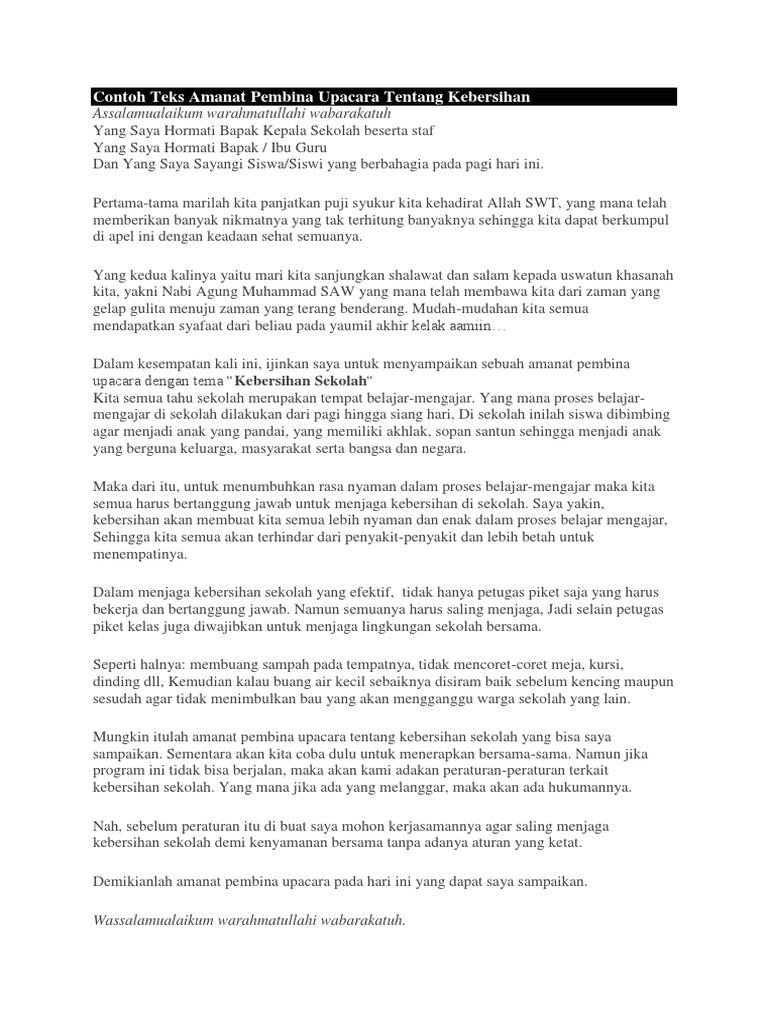 Contoh Teks Amanat Pembina Upacara Tentang Kebersihan.docx