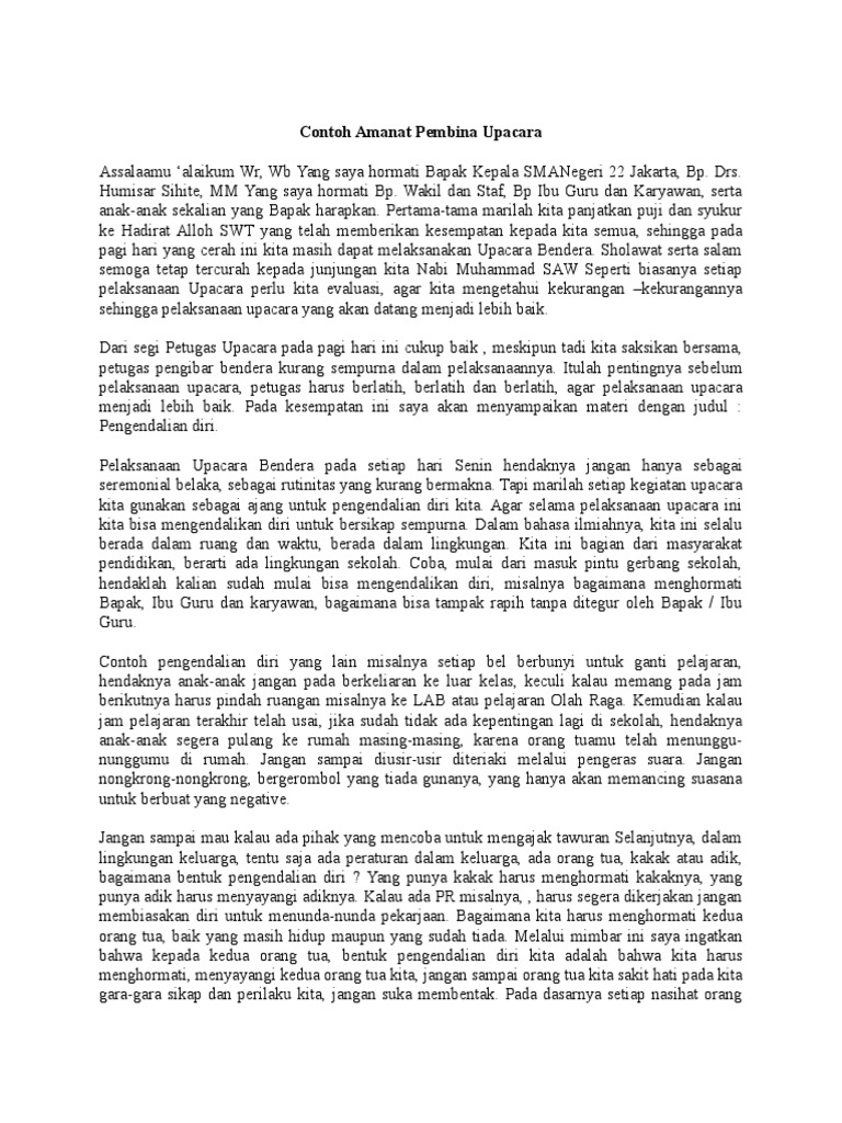 Contoh Amanat Pembina Upacara Hari Senin Di Sekolah Sahabat Cerpi …