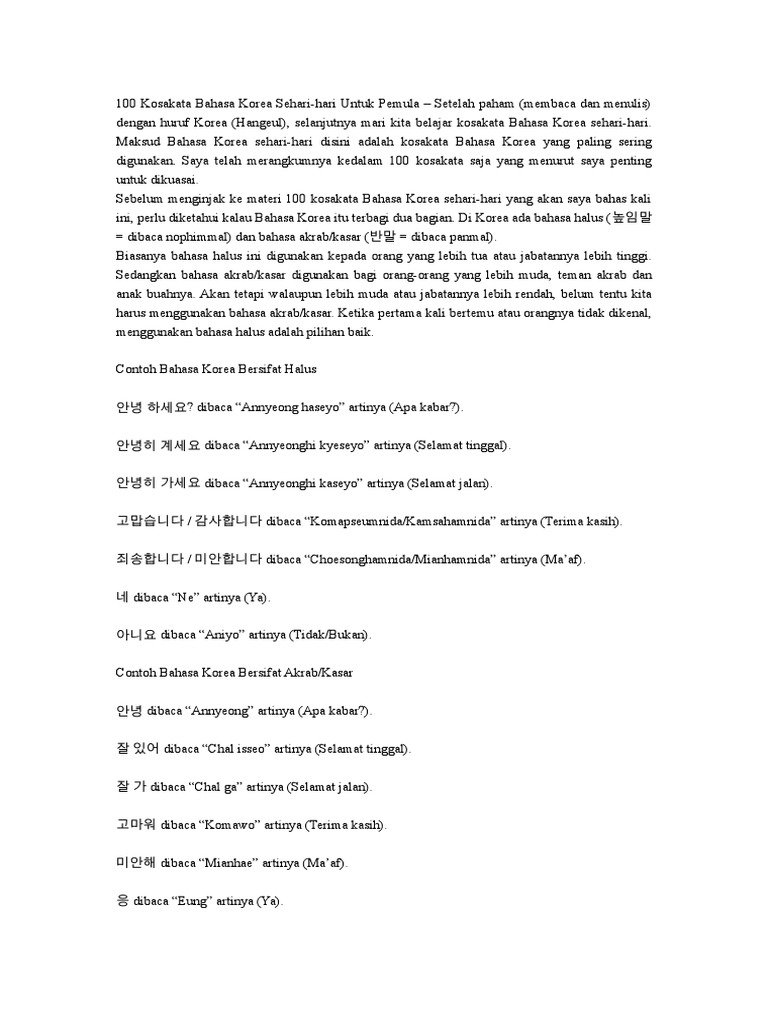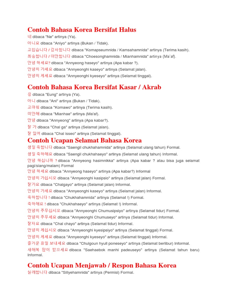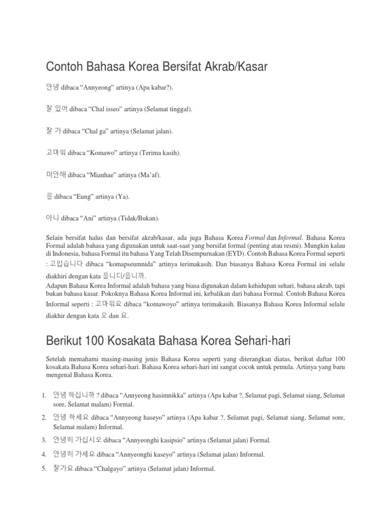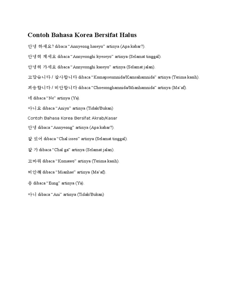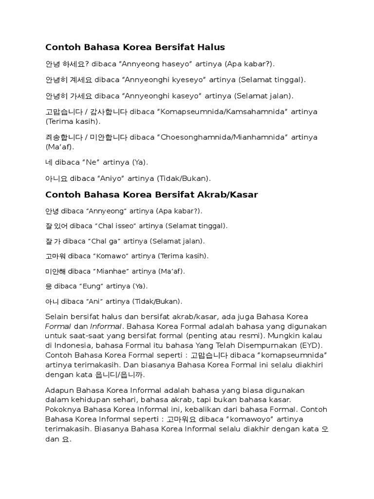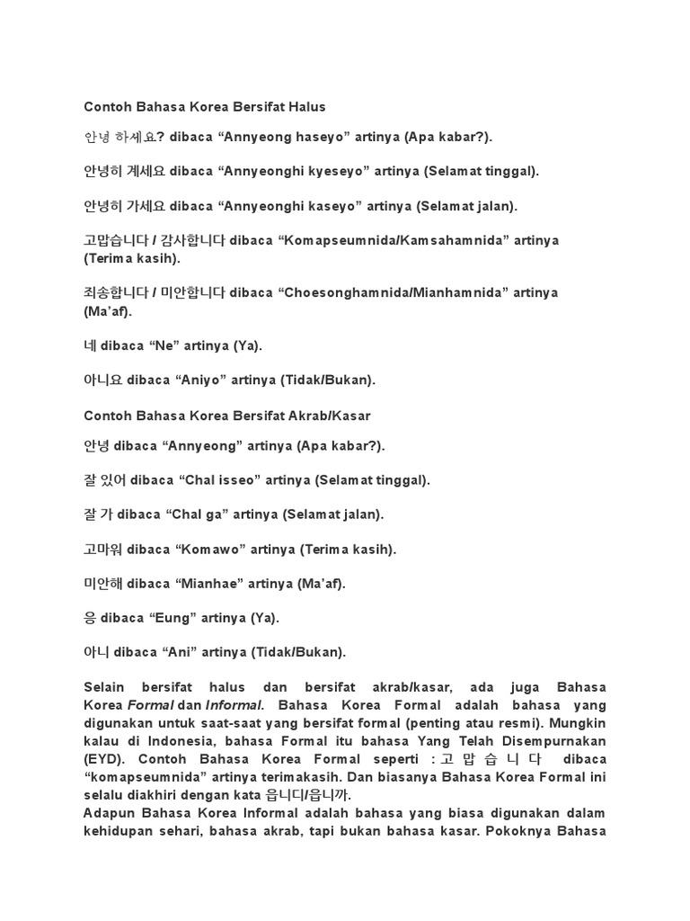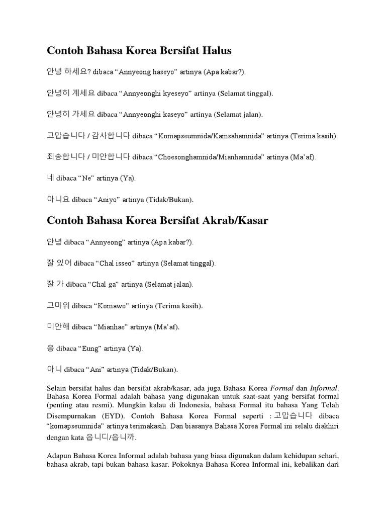 DOC) Contoh Bahasa Korea Bersifat Halus | iyos jekers - Academia.edu