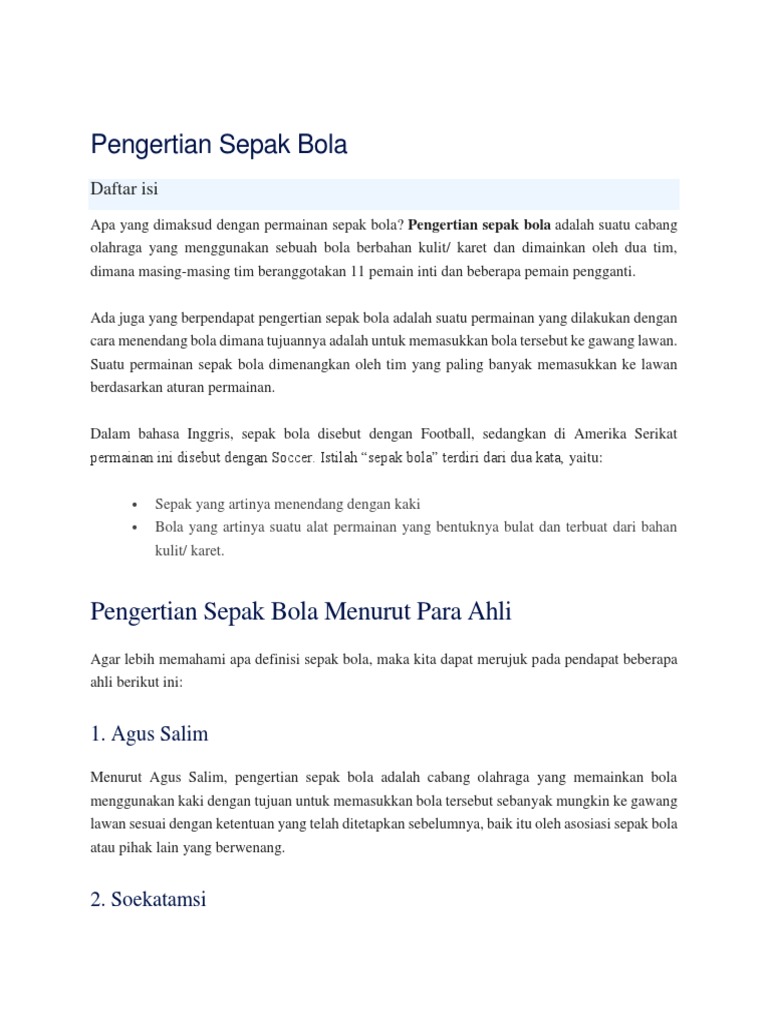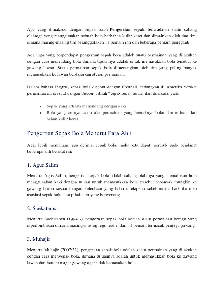Pengertian Sepak Bola Menurut Para Ahli: 1. Agus Salim