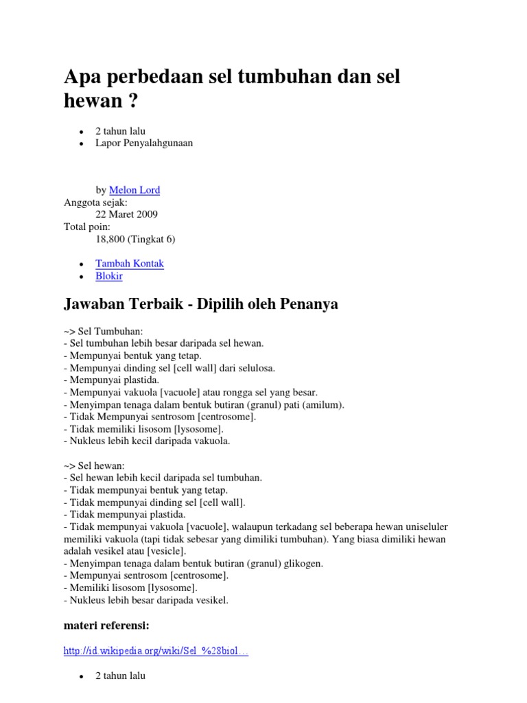 DOC) PERBEDAAN SEL HEWAN, SEL TUMBUHAN DAN SEL BAKTERI | Eifa Zilfasani - Academia.edu