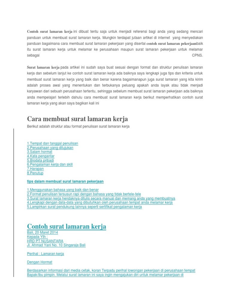 Contoh Surat Lamaran Kerja Yang Baik and
