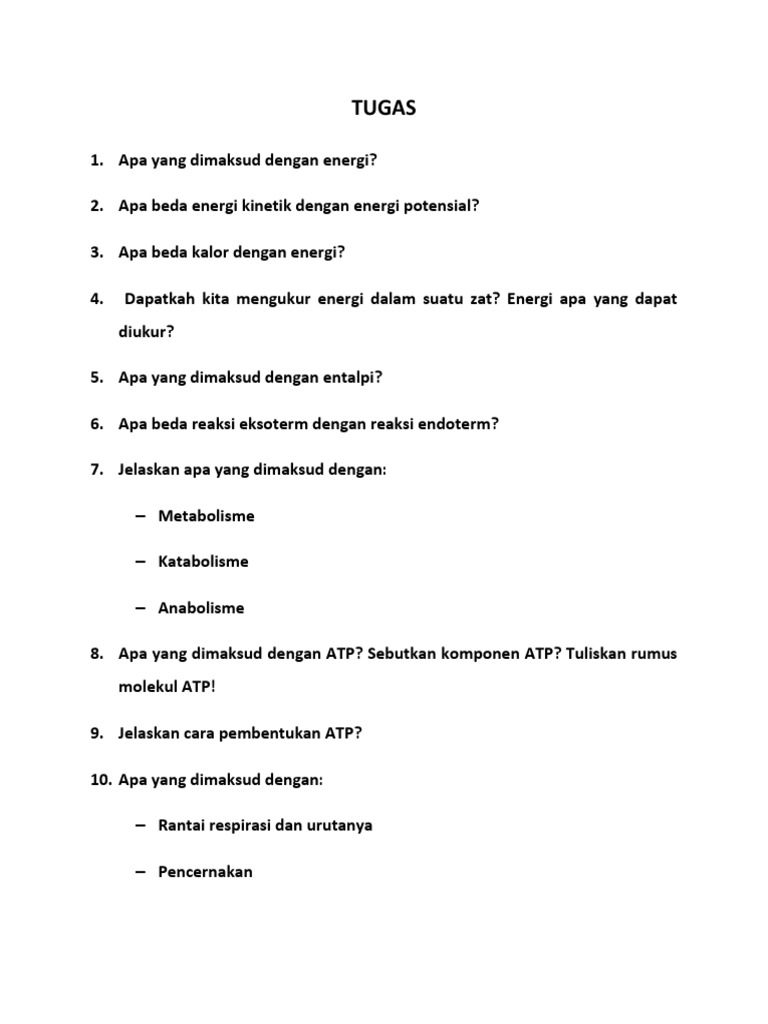 Tugas: – Metabolisme – Katabolisme – Anabolisme