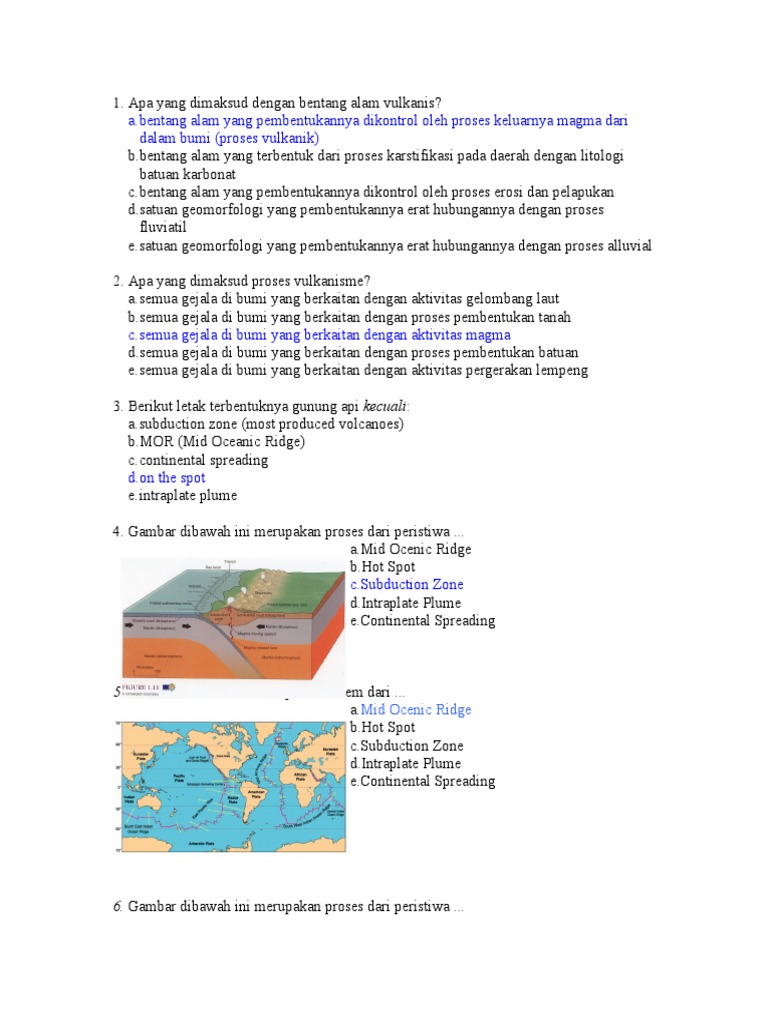 Mengerjakan PR: Soal Pilihan tentang Vulkanisme