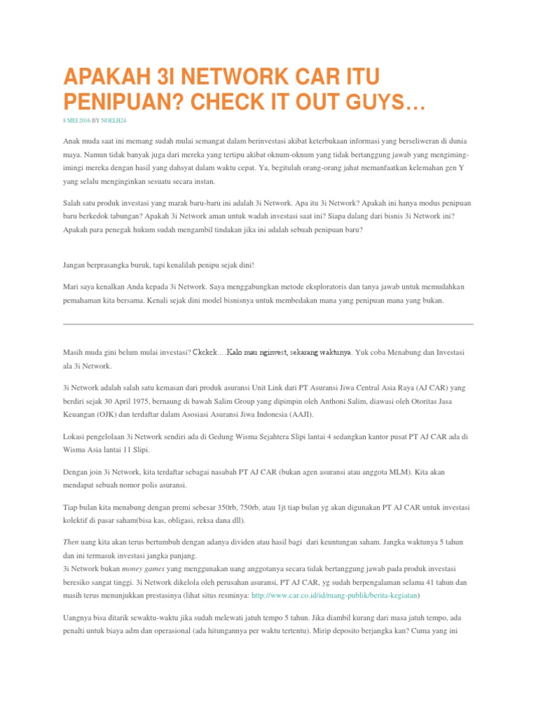 Benarkah Asuransi CAR 3iNetworks Penipuan Dan Sebagai Bisnis …