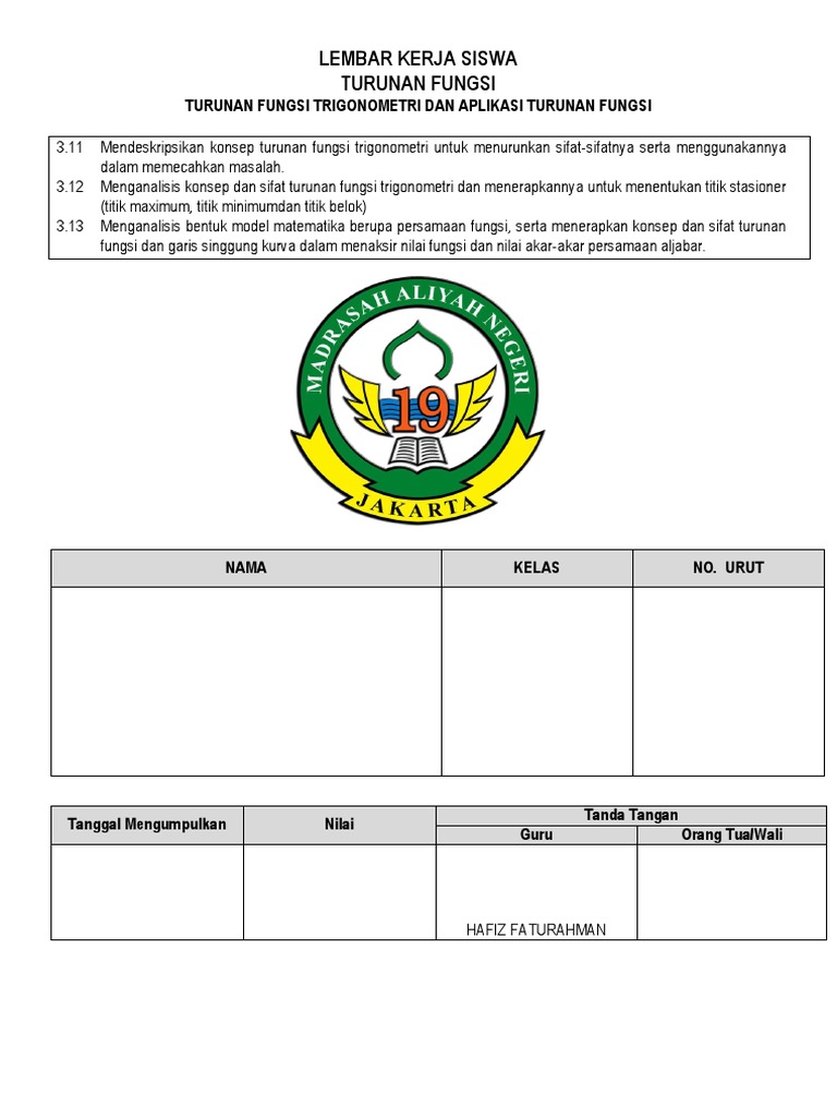 RPP APLIKASI TURUNAN FUNGSI TRIGONOMETRI - Peranti Guru