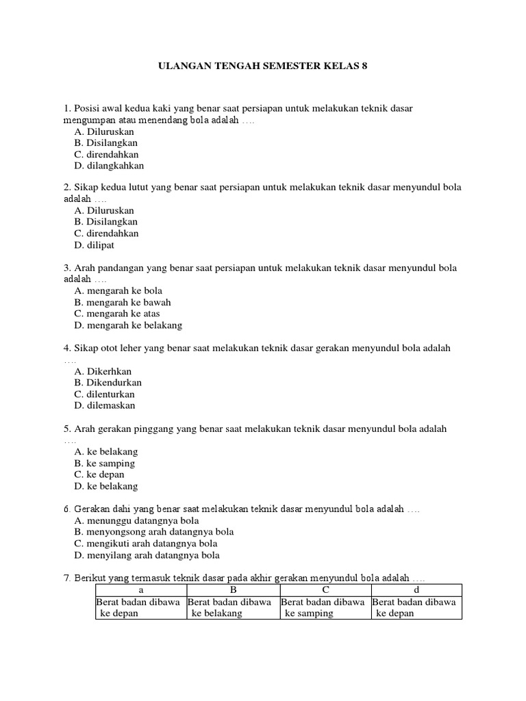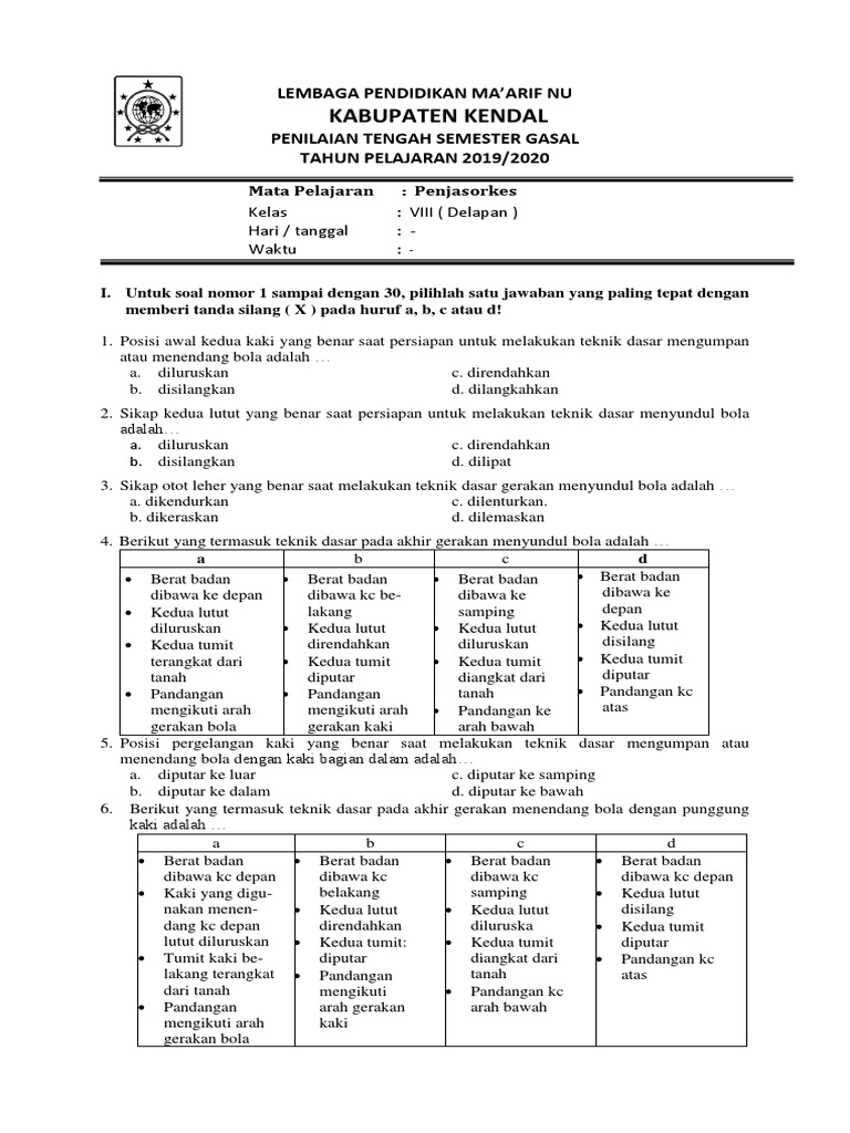 100+ Soal UTS/PTS PJOK Kelas 8 Sem. Ganjil Kurikulum 2013 | Soal …
