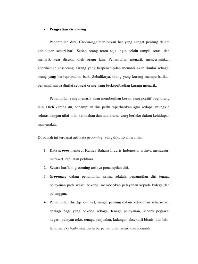 Grooming: Grooming dalam penampilan prima adalah, penampilan …