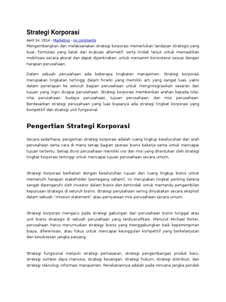 Pengertian Strategi Korporasi