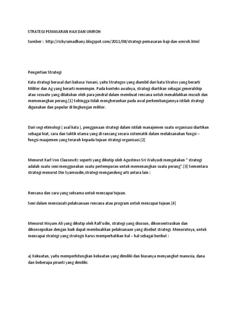 Strategi Pemasaran Haji Dan Umroh