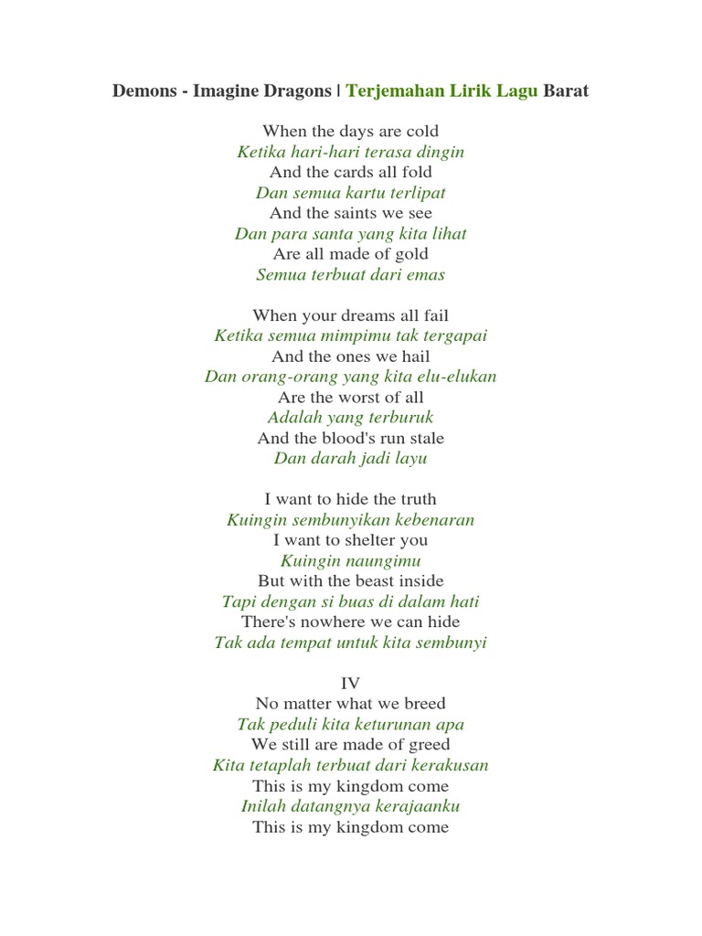 Demons - Imagine Dragons (Lirik dan Terjemahan Bahasa Indonesia …
