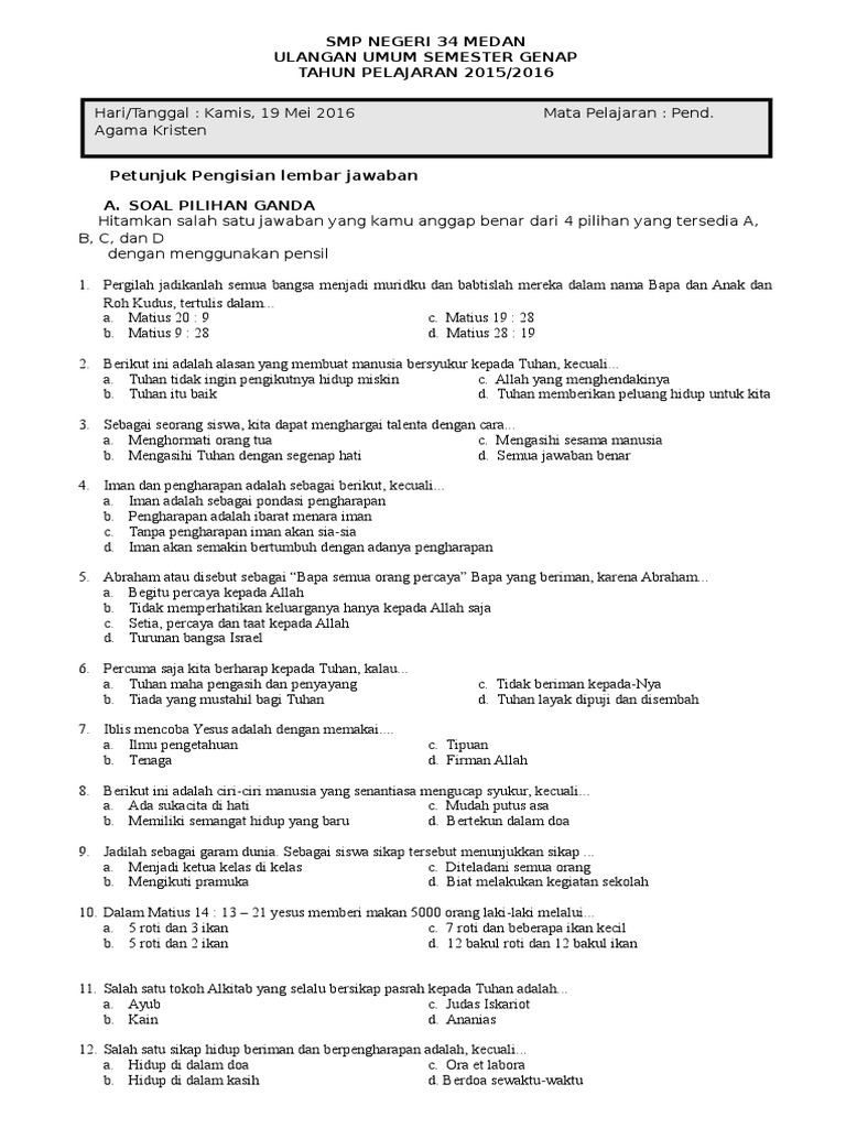 Latihan Soal UAS Agama Kristen Kelas 12 Semester 1 K13 2021 dan …