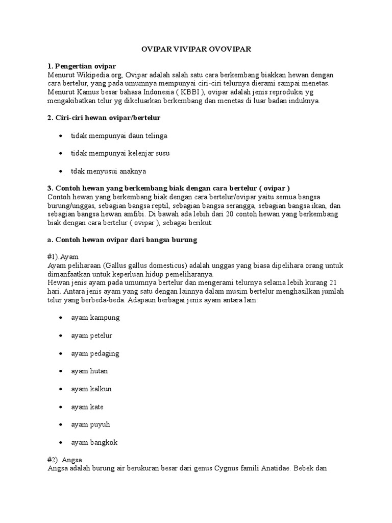 contoh jenis hewan ovipar,vivipar dan ovovivipar - Brainly.co.id