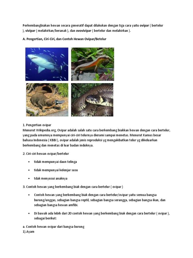 Contoh Hewan Ovovivipar Ovipar Dan Vivipar | Materi Pelajaran 10