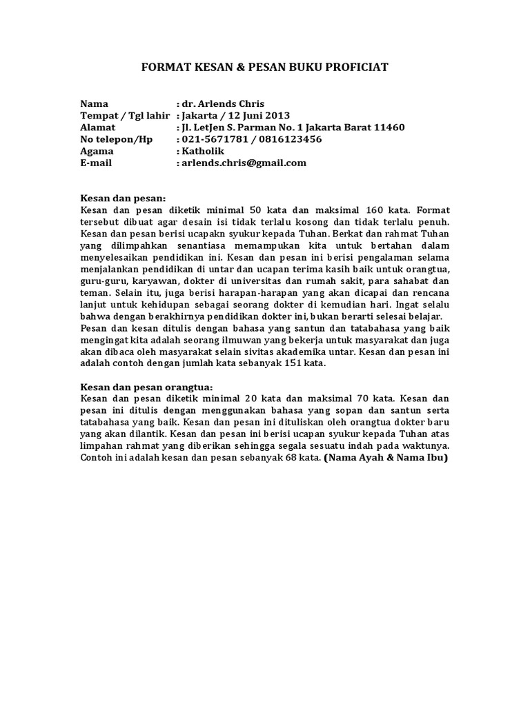 Format Pesan Dan Kesan Proficiat
