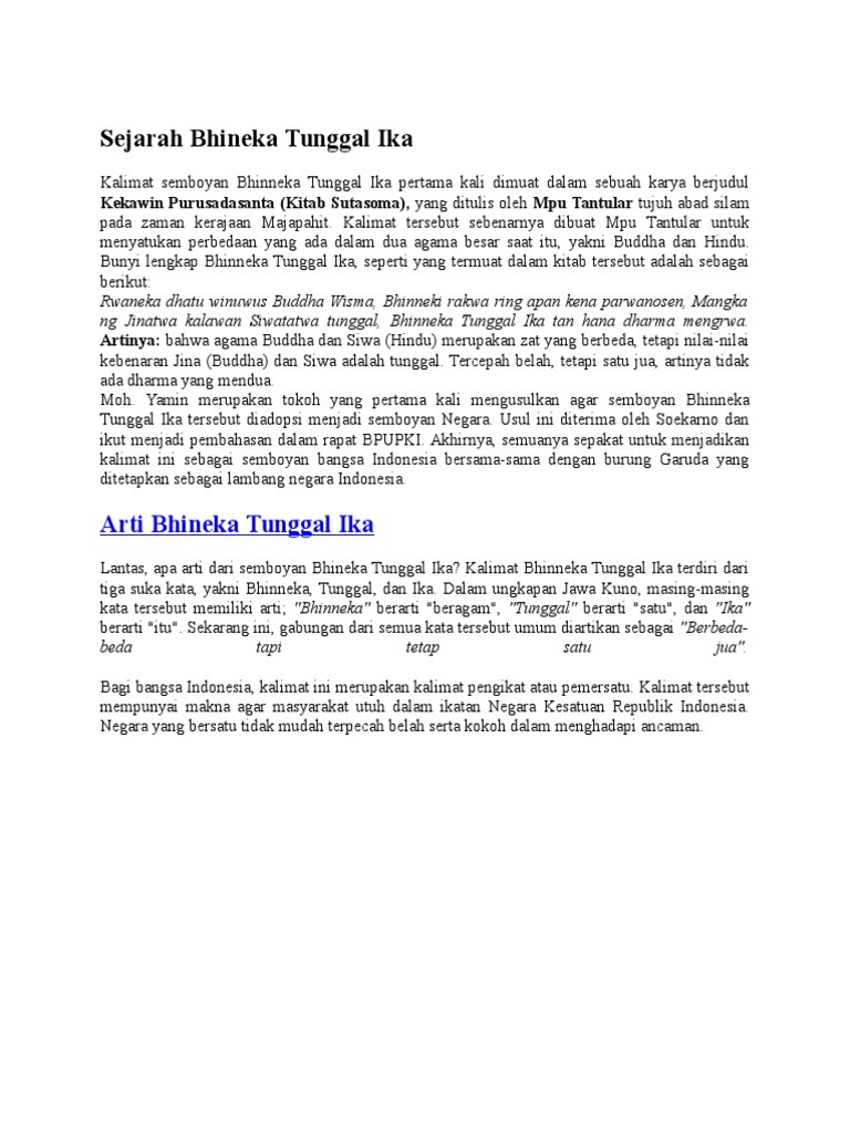 sejarah _ makna Bhinneka Tunggal Ika.pdf - Sejarah Dan Makna Semboyan Bhinneka Tunggal Ika Bhinneka Tunggal Ika adalah semboyan Negara Kesatuan Republik | Course Hero