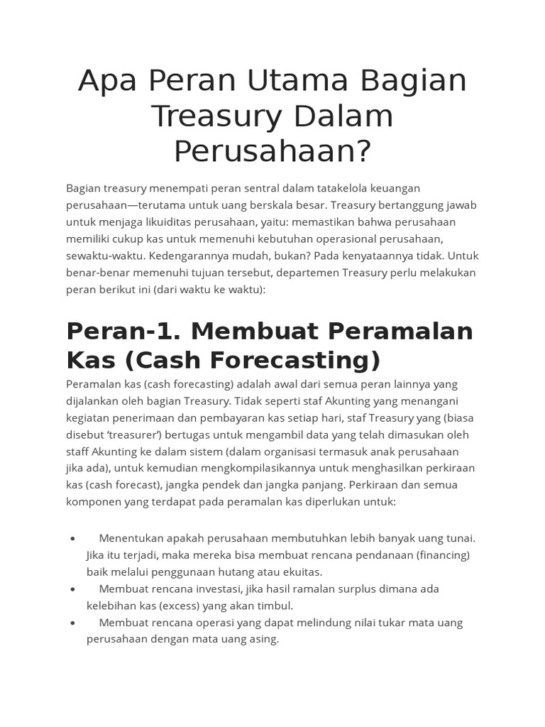 Apa Peran Utama Bagian Treasury Dalam Perusahaan