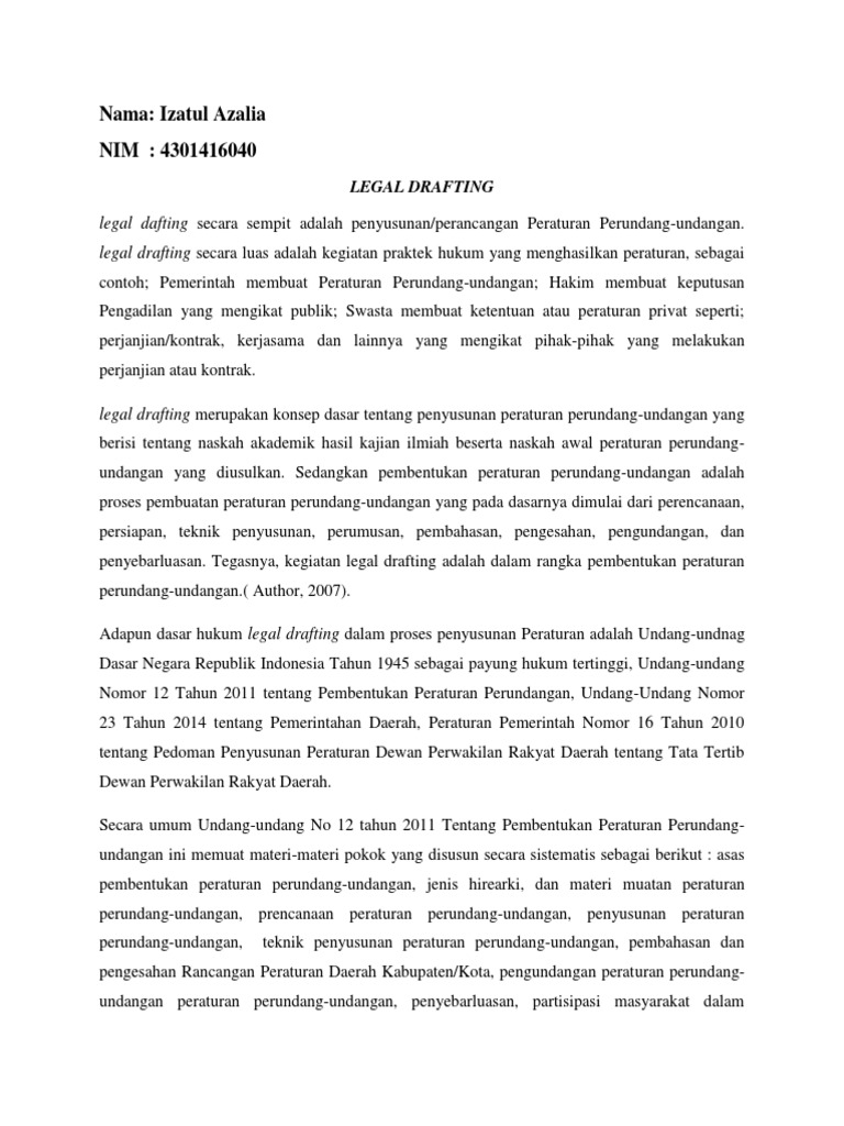 Nama: Izatul Azalia NIM: 4301416040: Legal Drafting