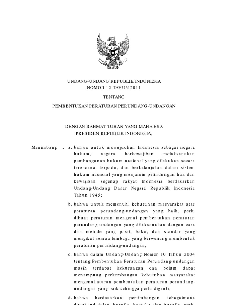 UU 12 tahun 2011 tentang Pembentukan Peraturan Perundang-Undangan …