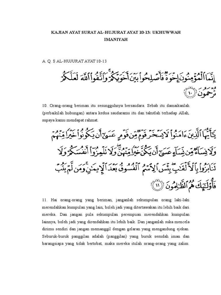 Isi Kandungan Al-Qur’an Surat Al-Hujurat Ayat 10 Sampai 13 dan …