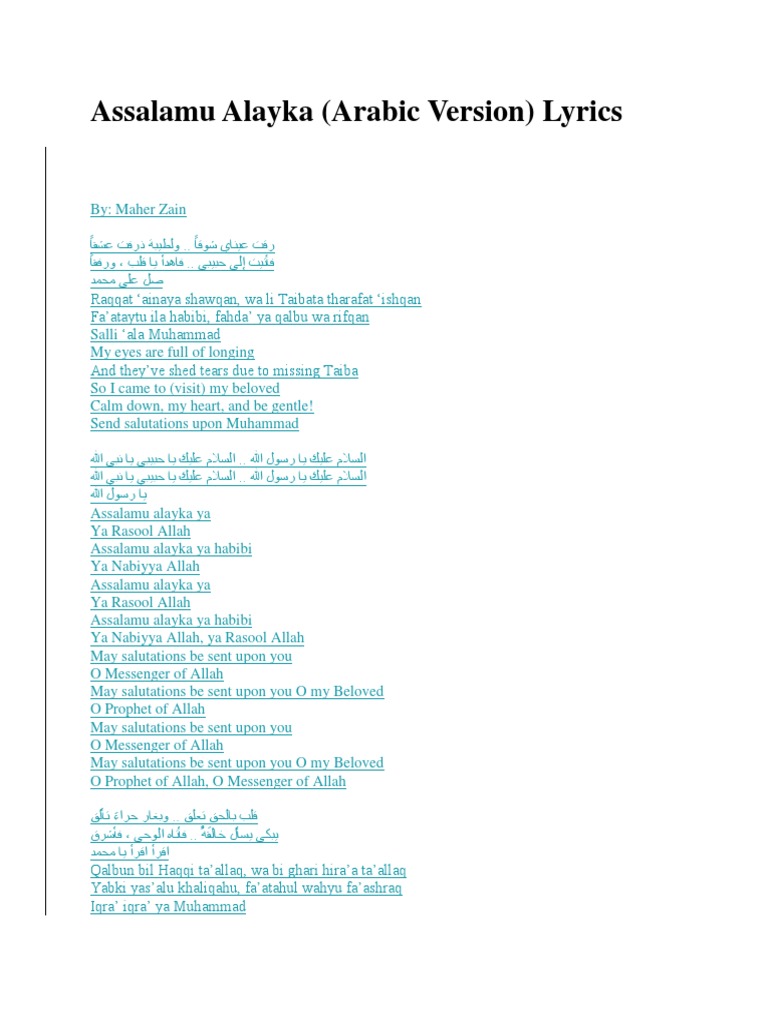 Teks atau Lirik Arab Assalamu ‘Alayka Maher Zein (arabic liryc) | Cinta Pustaka Islam