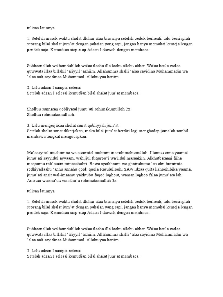 DOC) Tata Cara Bilal dalam Sholat Jum’at dan Bacaan- bacannya …