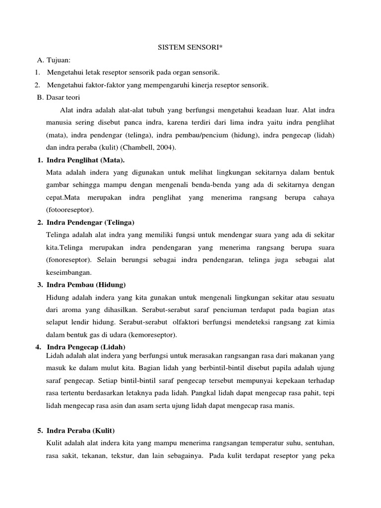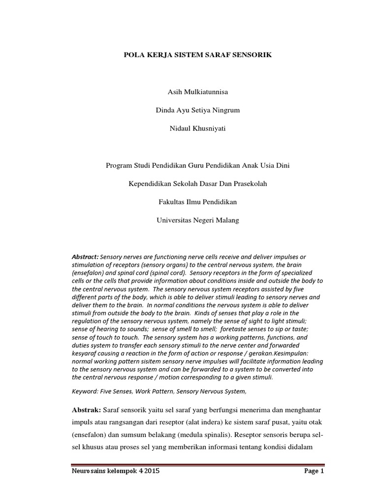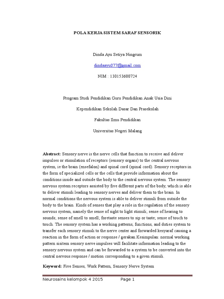 DOC) POLA KERJA SISTEM SARAF SENSORIK | asih mulkiatunnisa - Academia.edu
