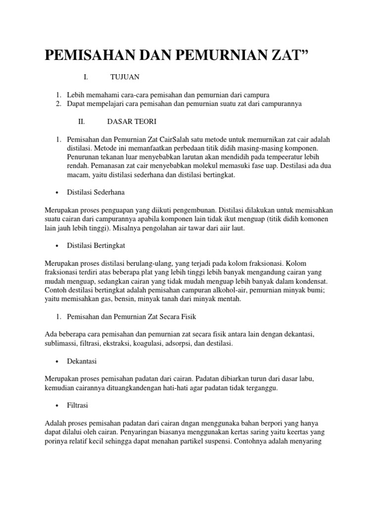 DOC) Pemisahan dan pemurnian KIMIA DASAR | Bhakti Zuar - Academia.edu