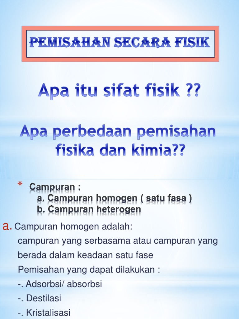 Metode Pemisahan Campuran Homogen dan Heterogen / Kimia …