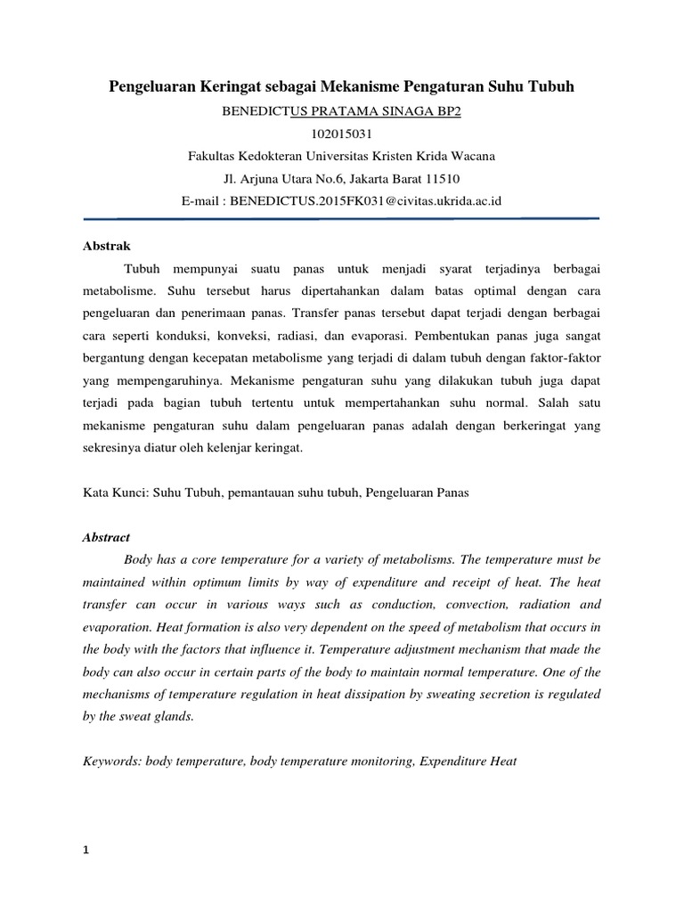 Pengeluaran Keringat sebagai Mekanisme Pengaturan Suhu Tubuh - PDF Free Download