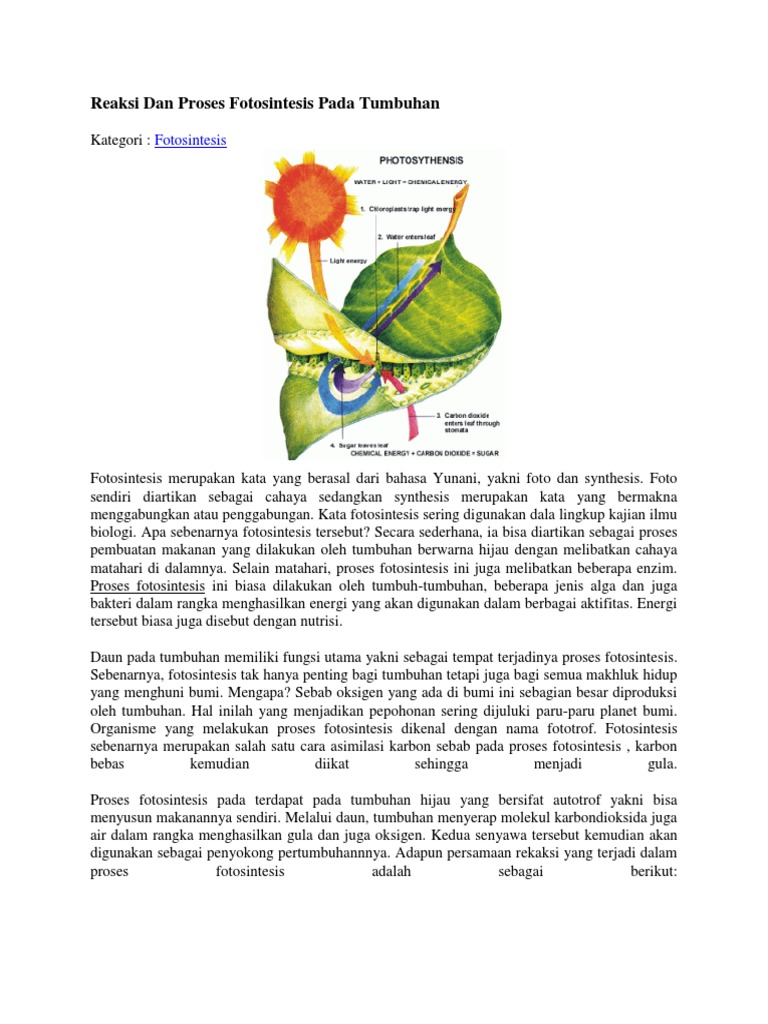 Reaksi Dan Proses Fotosintesis Pada Tumbuhan | Desi Safitri …