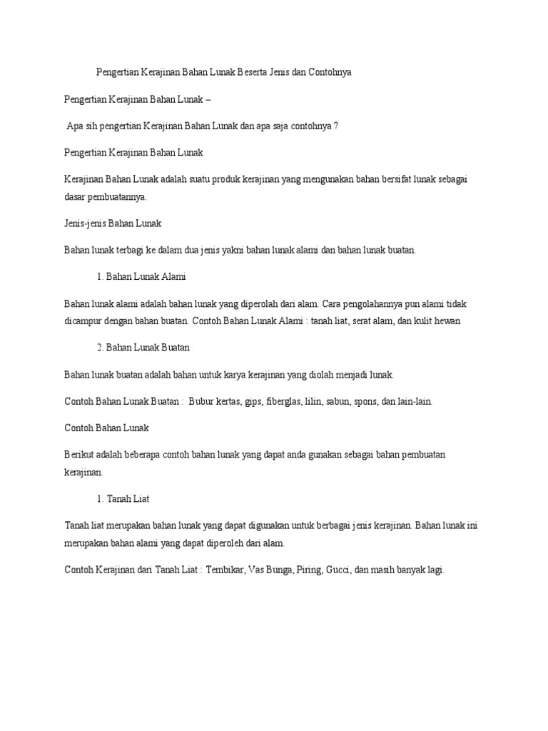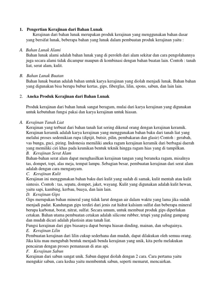 PKU.doc - 1 Kerajinan dari bahan lunak merupakan produk kerajinan yang menggunakan bahan dasar yang bersifat lunak beberapa bahan lunak yang digunakan | Course Hero