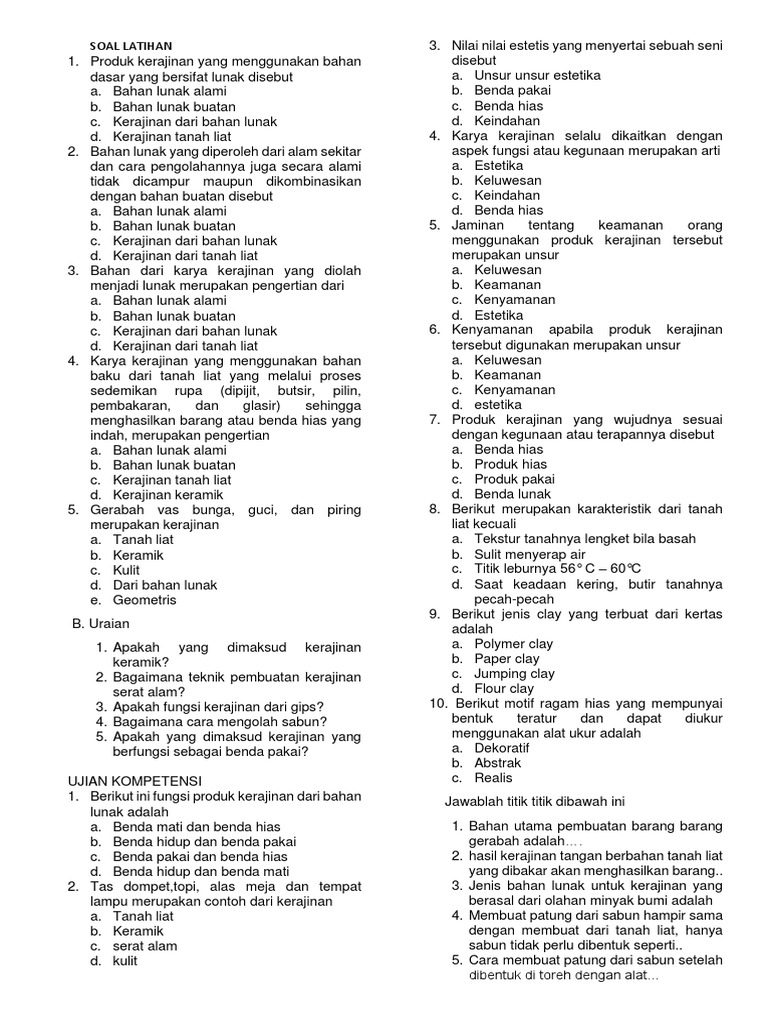 2019 UTS Soal Prakarya Kls 8 KERAJINAN Sm1