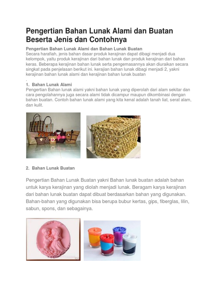 1.Contoh dari kerajinan bahan lunak ialah…2.Bahan lunak karya kerajinan yang diolah menjadi lunak - Brainly.co.id