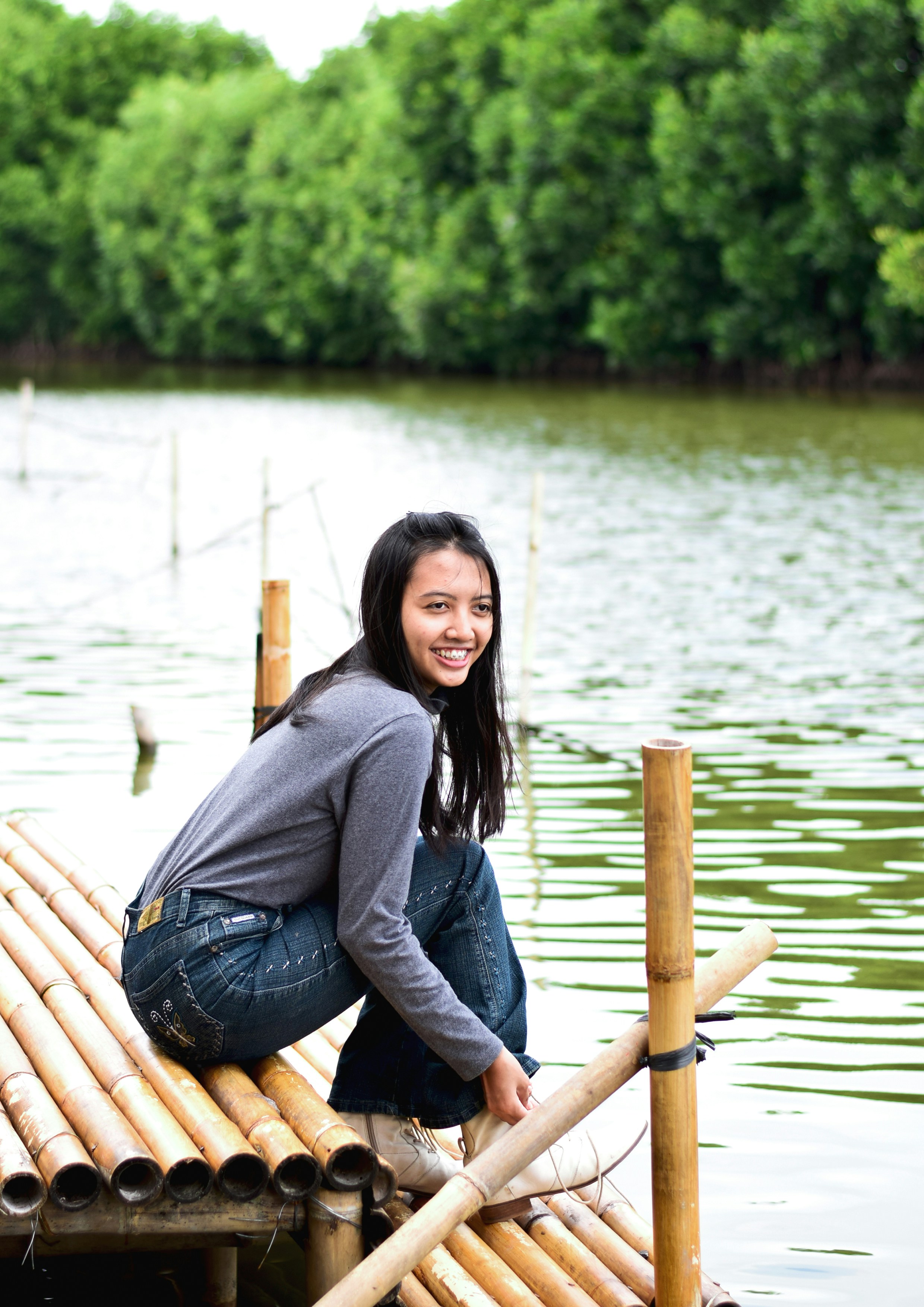 Woman Sitting On Bamboo Dock - Nohat - Free for designer