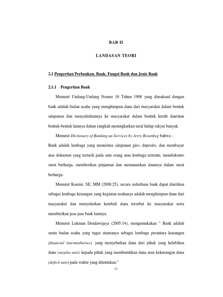 10 BAB II KAJIAN PUSTAKA 2.1 Landasan Teori 2.1.1 Bank