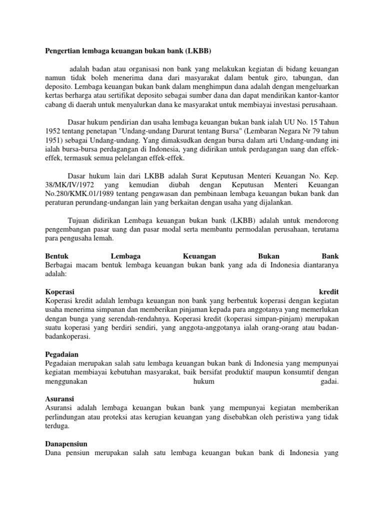 Pengertian Lembaga keuangan bukan bank (LKBB) - Kanal Pengetahuan